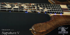 28 frets body style, Black Poplar Burl Top, MIDI, piezo bridge, abalone binding and "Quo Vadis" Mother of Pearl inlay
