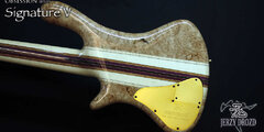 Our top of the line SIGNATURE™ bass probably is the best expression of what we understand as "Bass Art". Although you will find the same electronics and pickups on our other creations, this bass was taken to extreme levels. The thirteen-piece laminated neck includes flamed maple, purpleheart, bubinga, and wenge. It also has top quality woods used on the body, with spalted maple wood on top and burl, crotch, or flamed walnut on the bottom and different thin veneers between these woods. Our proprietary JeDXD thin humbucker pickups, along with an Aguilar OBP-3 3-band active preamp with a 400Hz/800Hz frequency mid selector, are the perfect companions to this incredible wood amalgam in order to transmit all the fidelity and richness of the Signature™ bass. (*) these numbers are average for standard Signature and may vary depending on chosen woods and body version (24, 28 or 36 fret version) General Info