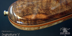 28 frets body style, Buckeye Burl Top, piezo bridge, maple binding on ebony macassar fretboard and "Quo Vadis" Paua abalone inlay